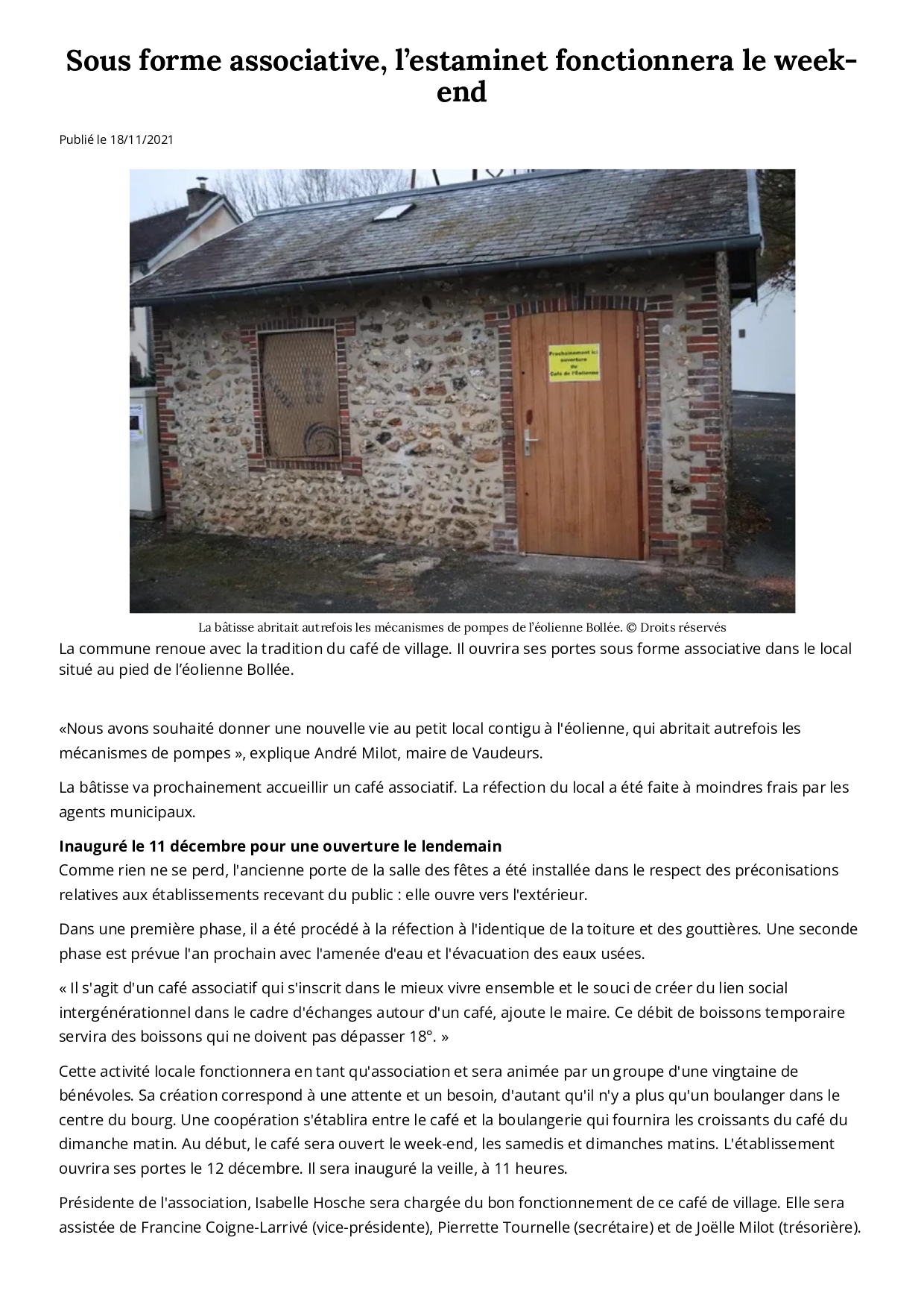 Sous forme associative, l’estaminet fonctionnera le week-end
