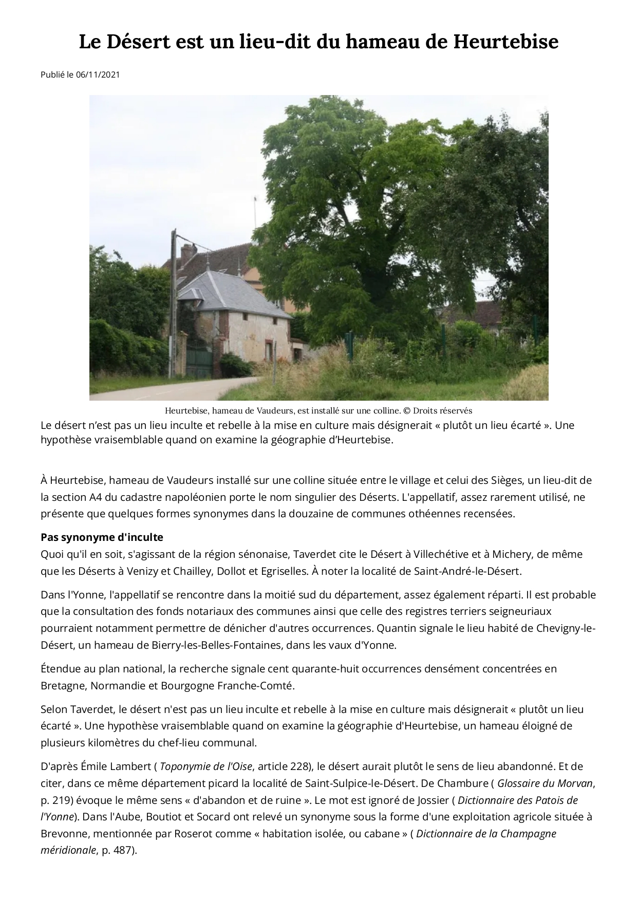 Le Désert est un lieu-dit du hameau de Heurtebise