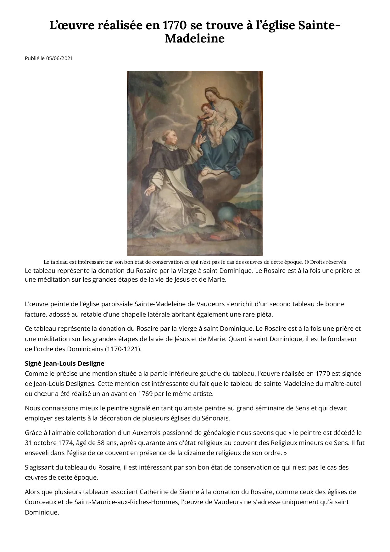 L’œuvre réalisée en 1770 se trouve à l’église Sainte-Madeleine