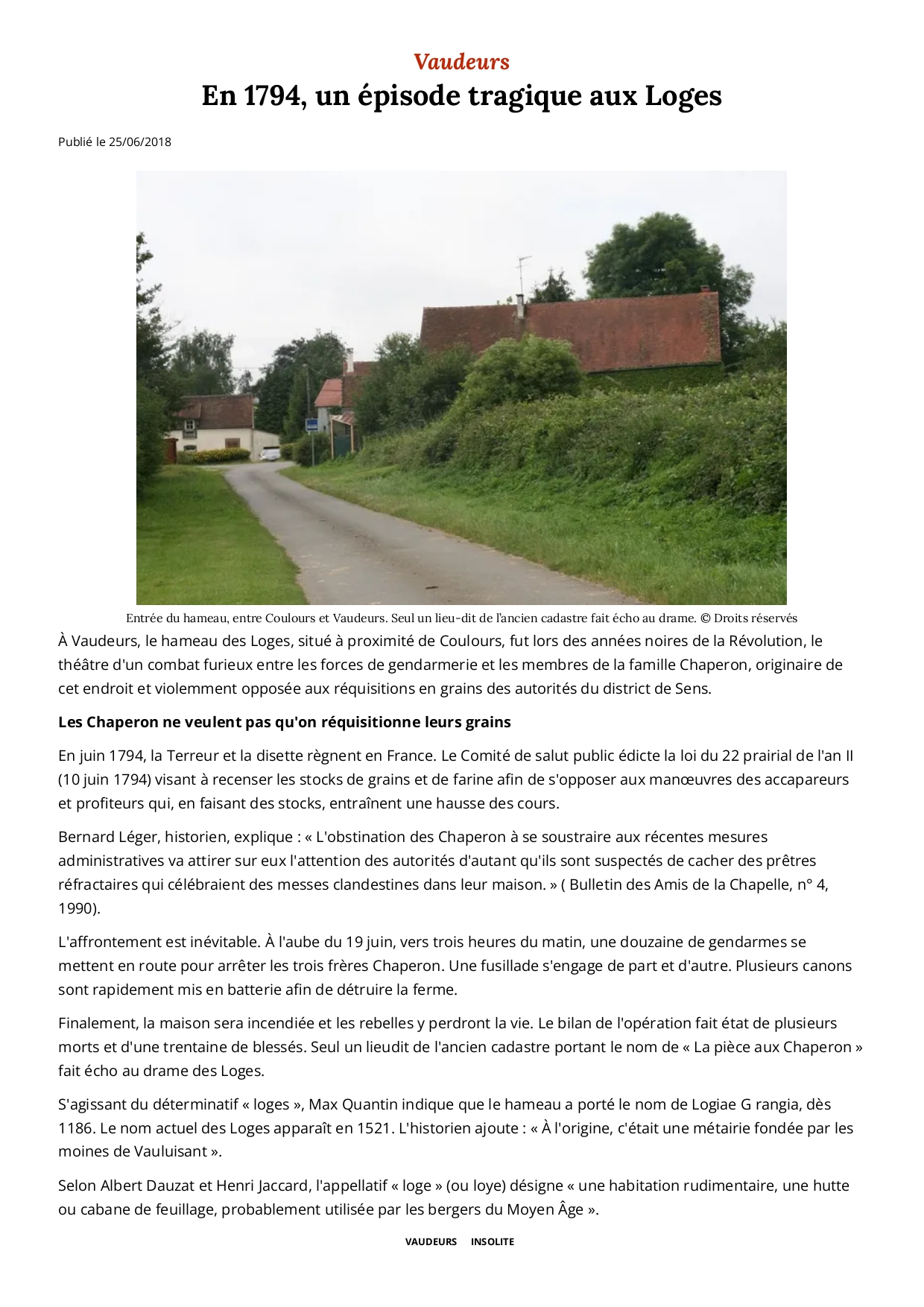 En 1794, un épisode tragique aux Loges