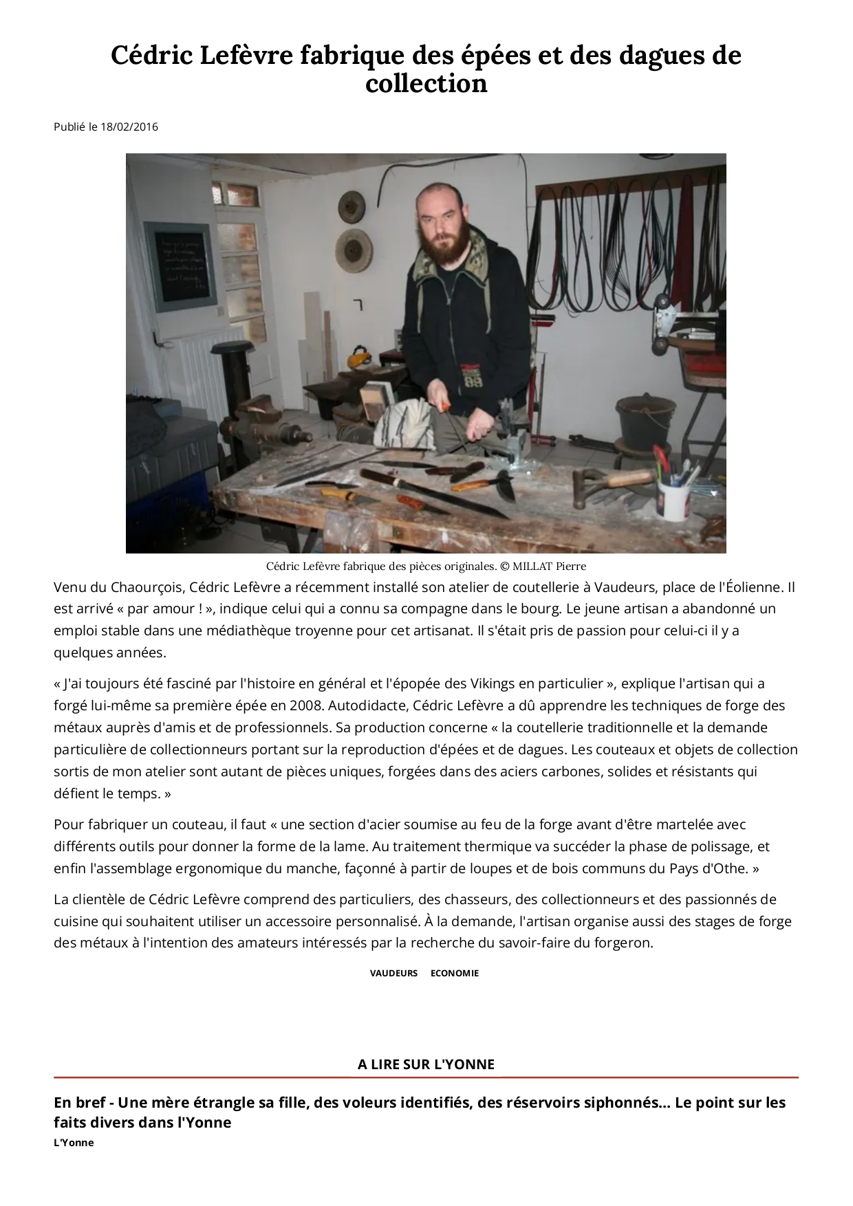 Cédric Lefèvre fabrique des épées et des dagues de collection
