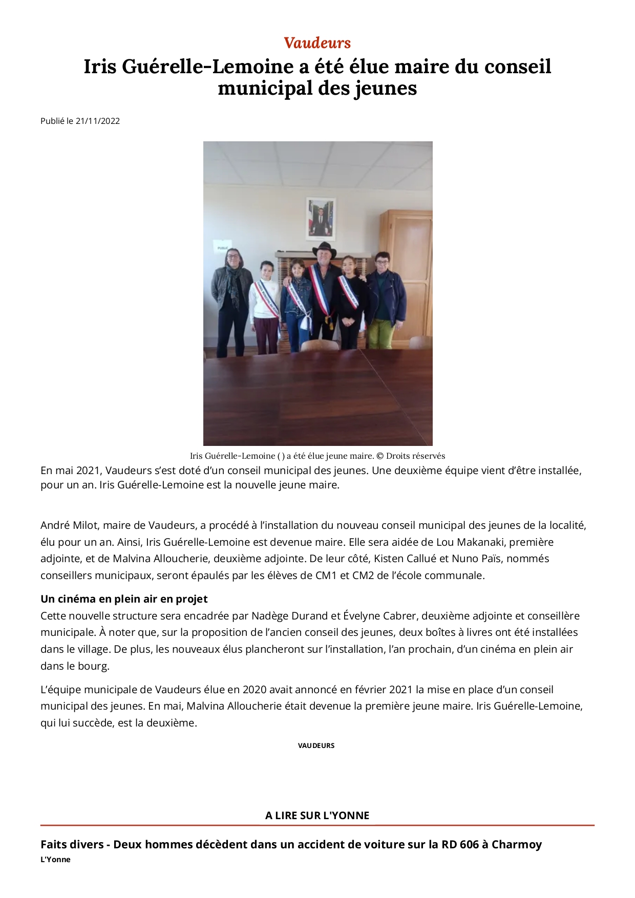 Iris Guérelle-Lemoine a été élue maire du conseil municipal des jeunes