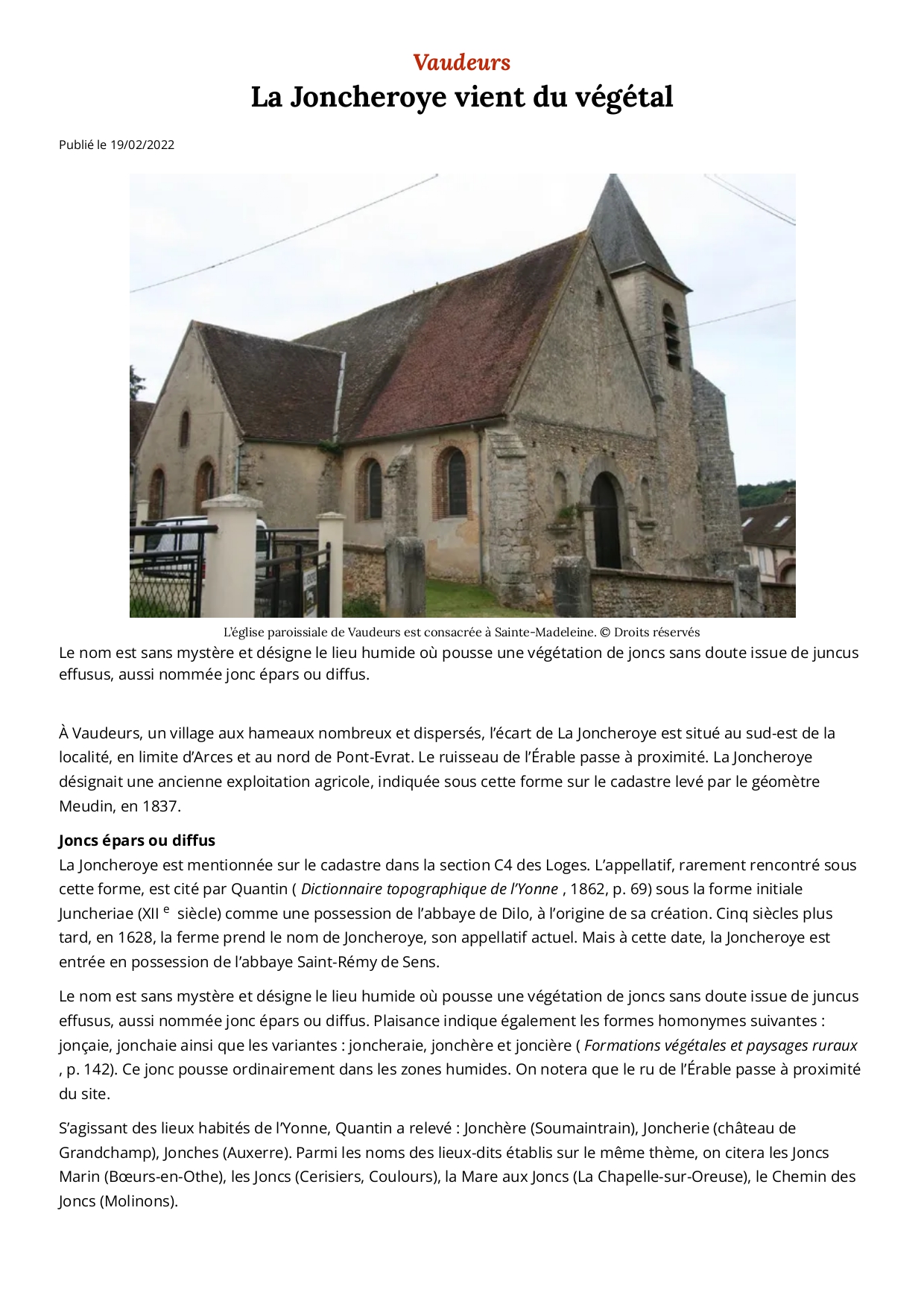 La Joncheroye vient du végétal