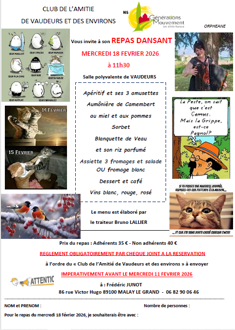 Repas proposé par le Club de l'amitié